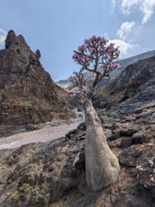 Donette and Todd spent March, 2023 on the Arabian Peninsula. They flew to Dubai and after doing a tour of the city, transferred to Abu Dhabi for a flight to Socotra, an island off the coast of Yemen. The Socotra portion of the trip didn’t quite go as planned; when they arrived on the island, the tour guide they had partnered with to develop climbing was in jail! Consequently, the trip was shortened. In addition to sampling the sights of the island, five new routes were done on a cliff overlooking the ocean to the north of Hadiboh.